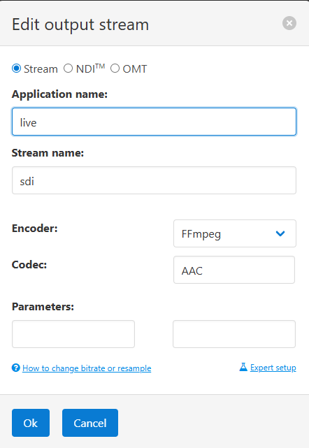The SDI feature set requires the latest versions of Nimble Streamer and Live Transcoder packages.